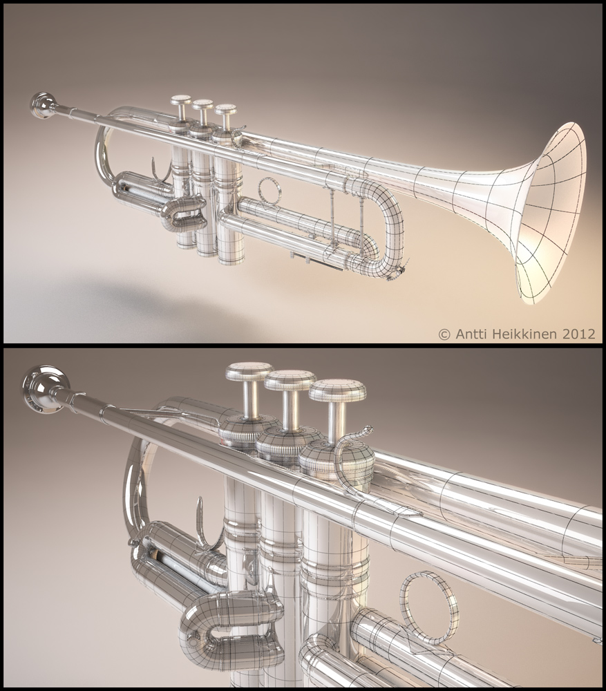 I modeled this based on my own trumpet as closely as I could. A personal project.